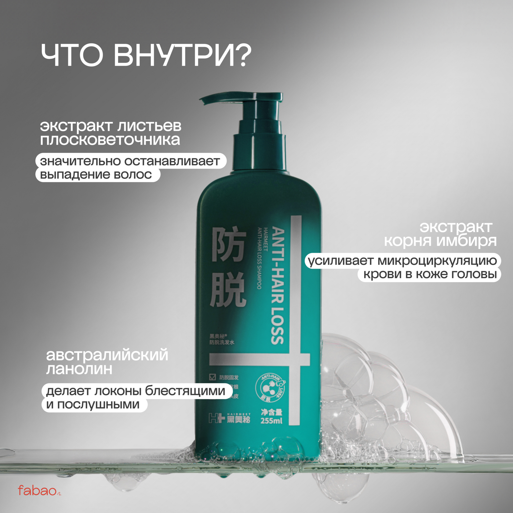 Шампунь против выпадения волос HAIRMEET замедляет активность 5α-R-редуктазы, способствует микроциркуляции крови в коже головы, повышает жизнеспособность волосяных фолликулов, предотвращает выпадение волос и стабилизирует их корни.